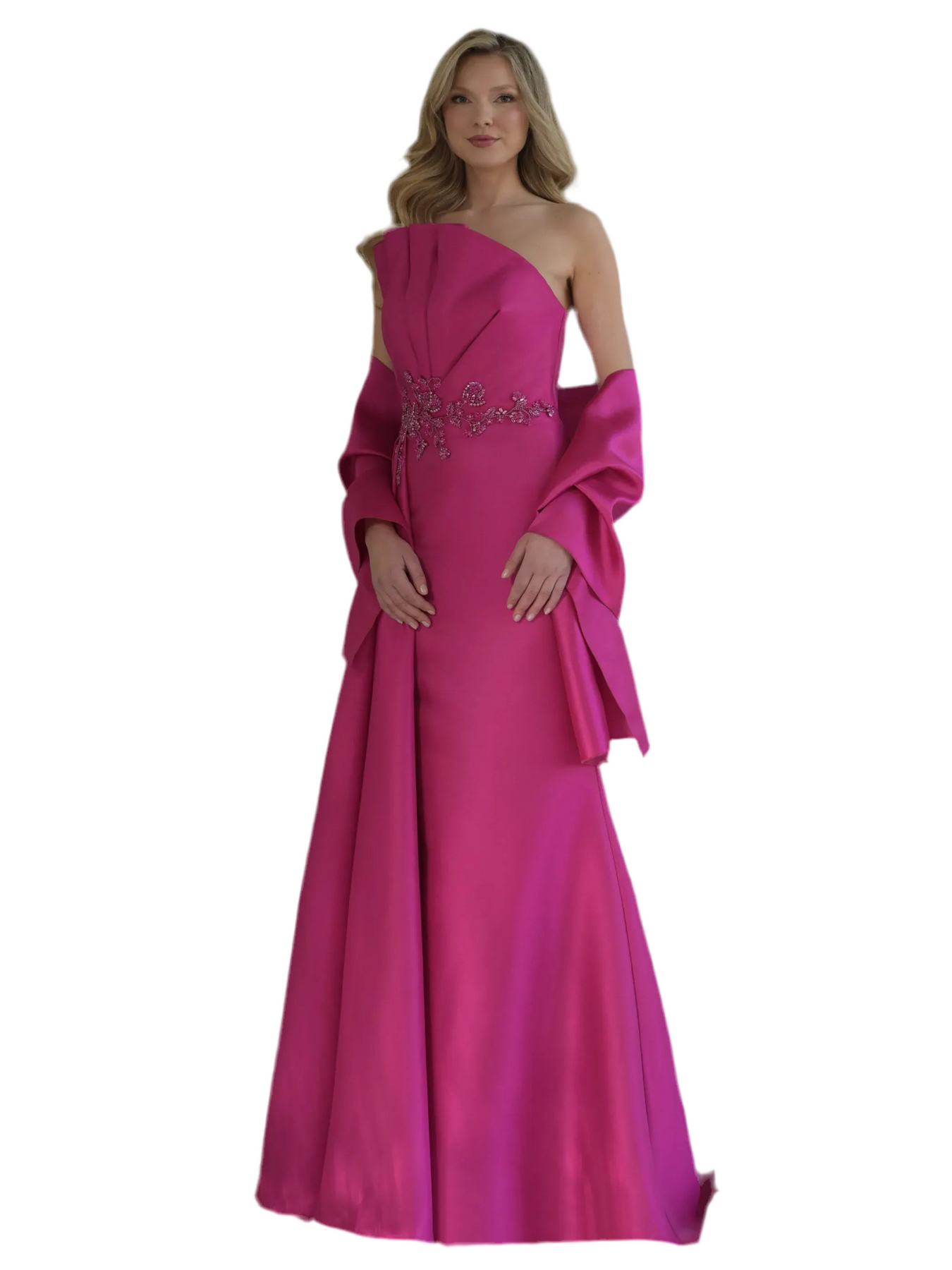 Regular price $1,460.00Indulge in luxury with the D1356 dress. Featuring a strapless design and intricate tonal beading, this elegant piece is perfect for any occasion. The unique detailing adds a touch of exclusivity, while the included shawl allows for versatile coverage. Make a statement with this stunning dress.