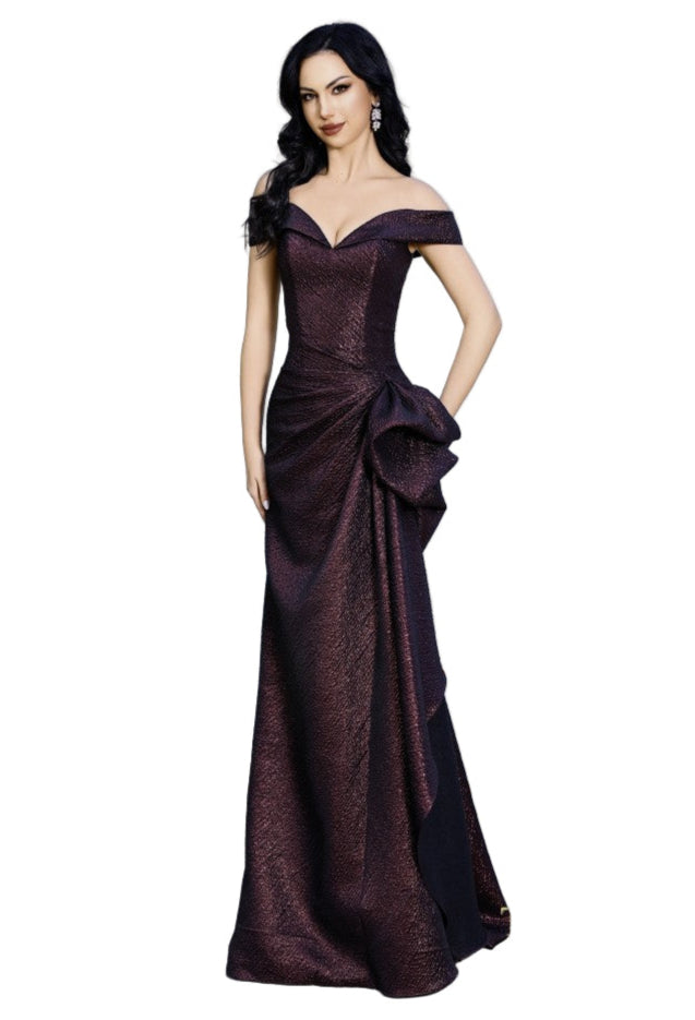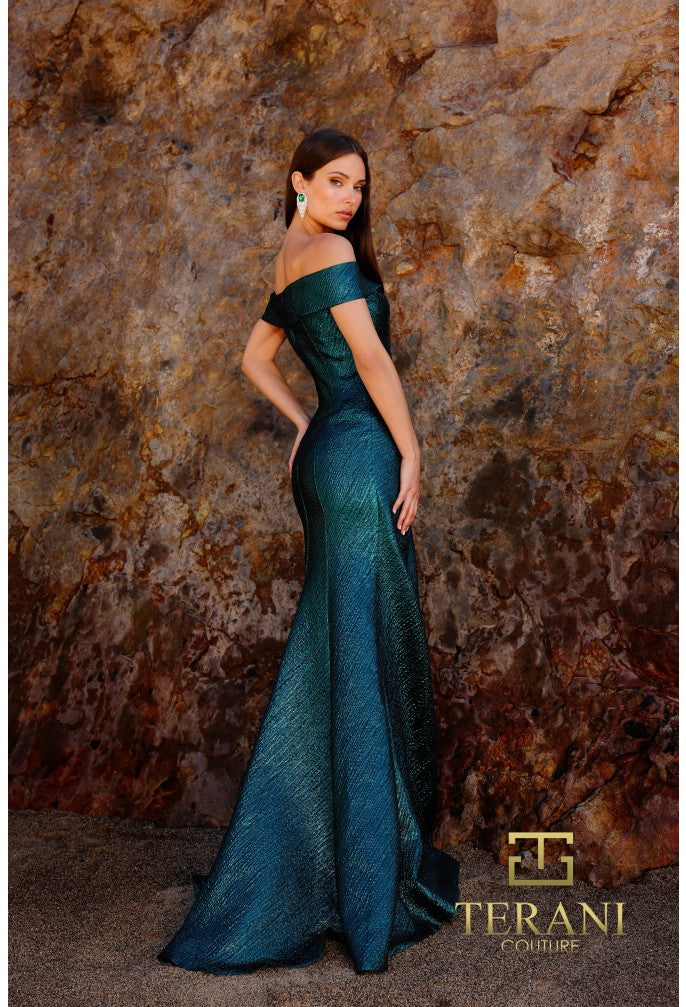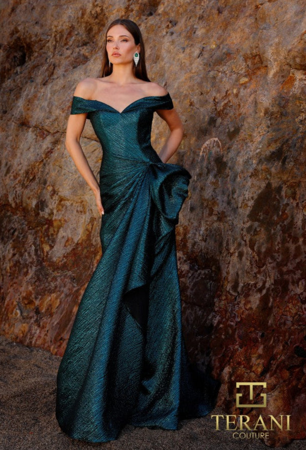 Regular price $990.00The Terani 252M5364 features an elegant off-the-shoulder neckline complemented by beautifully crafted draping, reminiscent of the refined style of 242M3335. This sophisticated gown offers a flattering silhouette that enhances your natural grace, making it an impeccable choice for formal events where timeless elegance is essential.